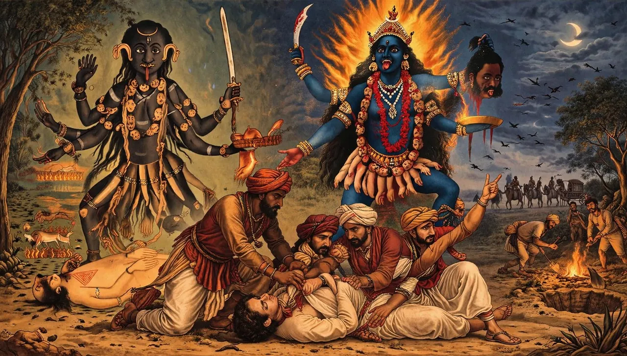 Според тази вяра, убийствата са част от поддържането на баланса между добро и зло. Но картината е по-сложна. В групите има както индуисти, така и мюсюлмани, а религиозните мотиви често се преплитат с прагматични цели – грабеж и оцеляване.
