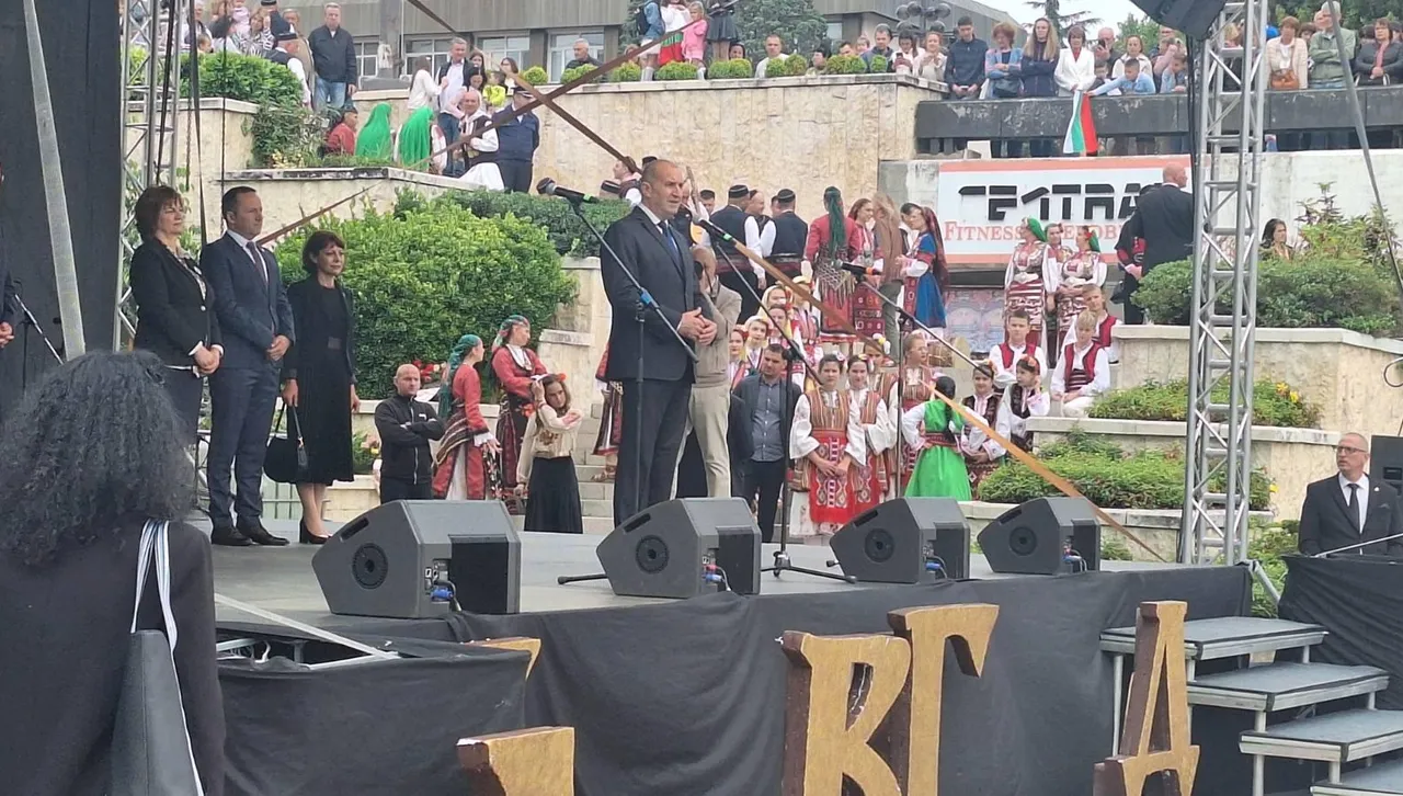 „24 май е истински празник на българския дух, който радва млади и стари. Тържество на нетленното дело на светите братя, техните ученици и последователи. Не е случайно, че прекрасен български край с богато минало, културен и образователен център като Благоевград е избрал именно днешния ден за свой празник. С почитта си към традициите Пиринският край остава верен последовател на идеалите на нашите предци, стожер на нашата родова и национална памет“, каза президентът на републиката. | БГНЕС