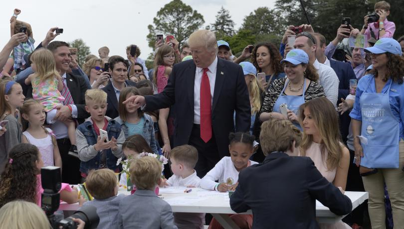 На търкалянето на яйца присъстваха петте деца на Тръмп, двете снахи на Тръмп и неговите девет внуци